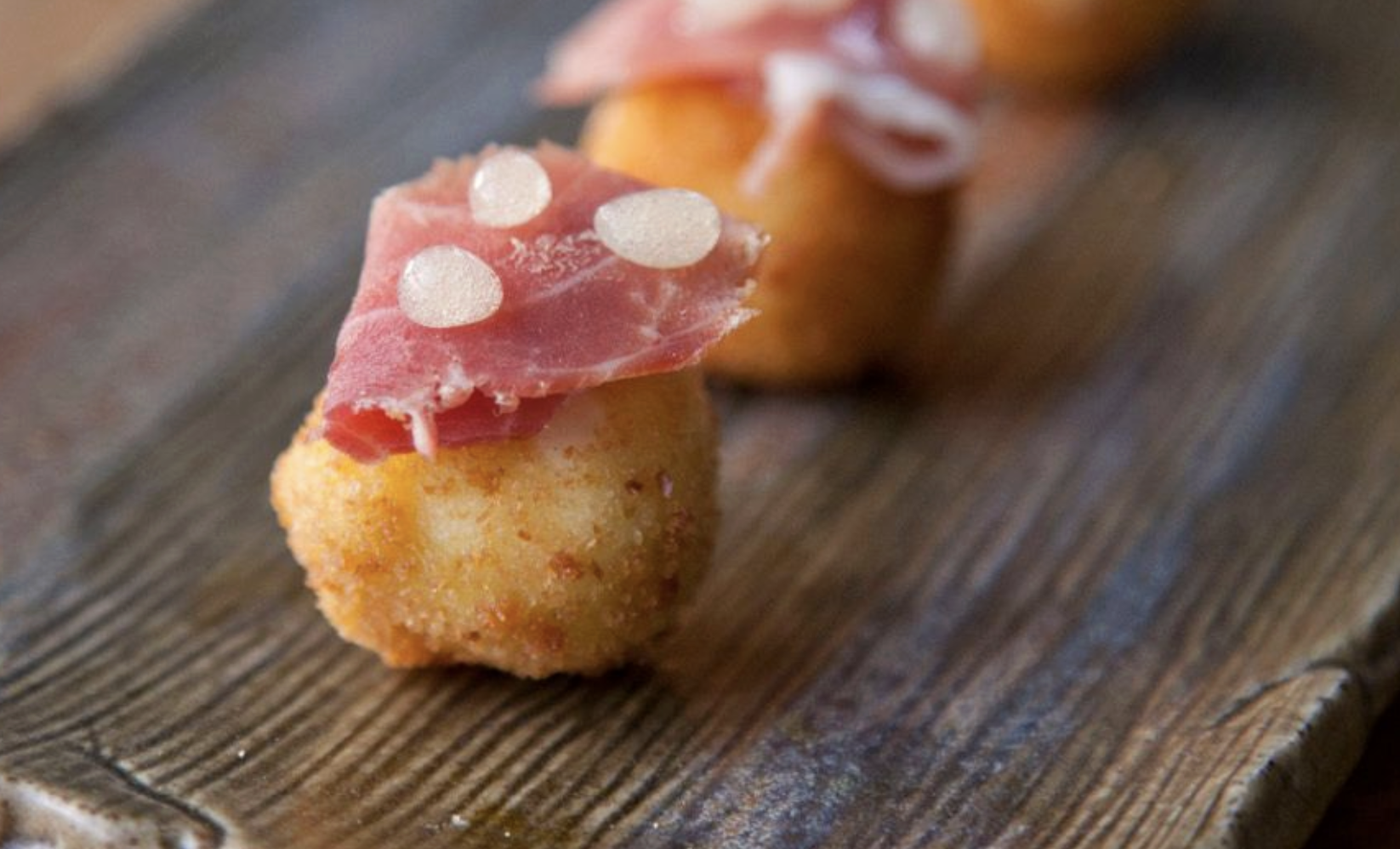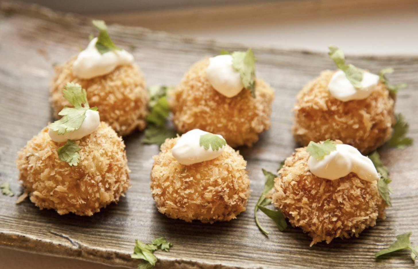 Rugbrødsbidder, Croquetas med béchamel og chicken tenders med dips