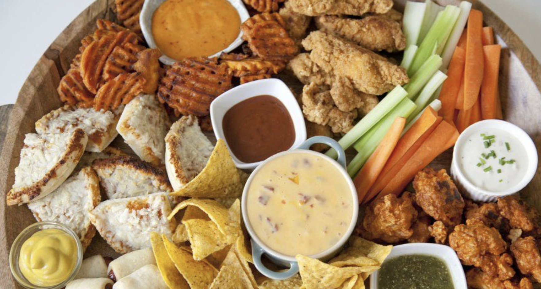 Tapas med et lækkert udvalg af kolde (fx individuelle charcuteribrætter med ost, jamón, chorizo, tapenade og frugt) og varme retter (fx sliders, fried chicken, mini gryderetter, pølser/hotdog eller tacos )